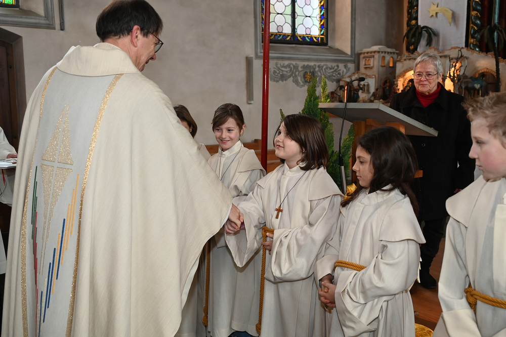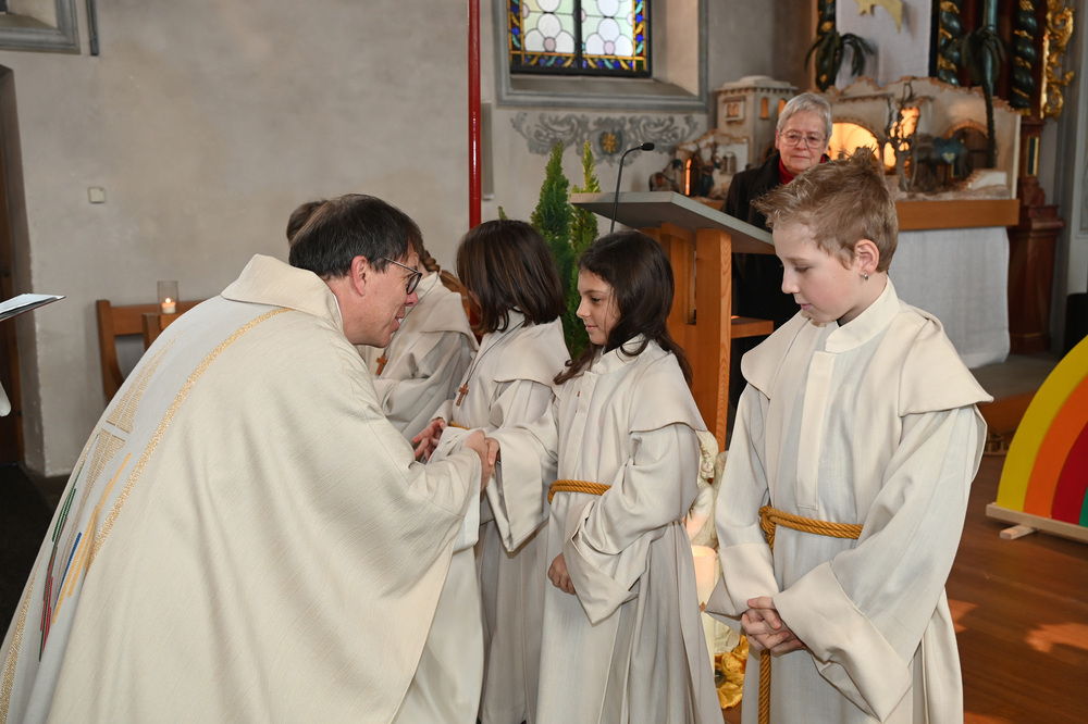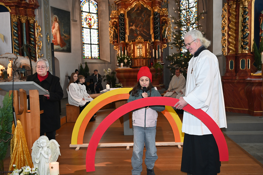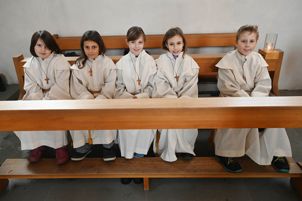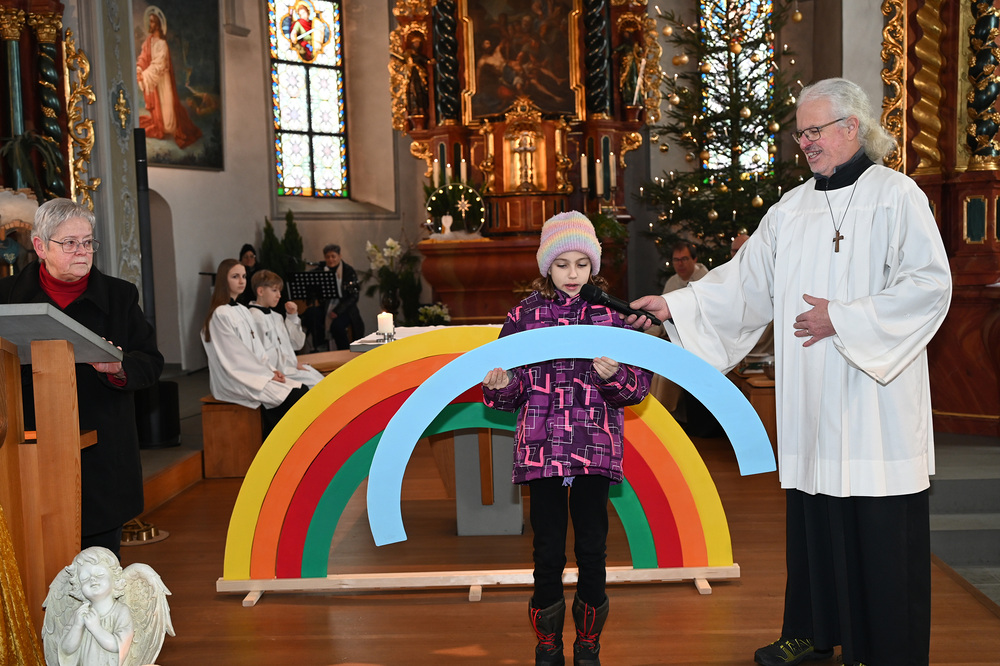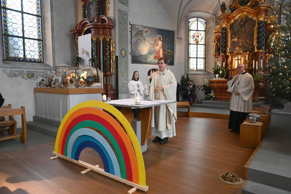 Im September haben sie mit der Probezeit begonnen, nun durften sie offiziell ihren Einsatz beginnen und bereicherten die Aufnahmefeier mit Texten und Liedern unter dem Symbol des Regenbogens. Dieses biblische Zeichen, das seit Noah die Versöhnung zwischen Himmel und Erde ausdrückt, stand im Mittelpunkt des Gottesdienstes. Die sieben Farben des Regenbogens erinnern uns an den Bund Gottes mit den Menschen.