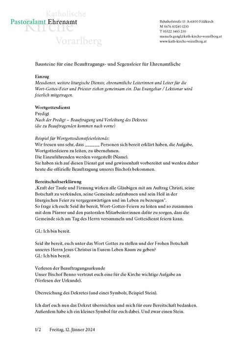 Ehrenamtsmanagement - Bauftragungs- und Segensfeier für Ehrenamtliche.
