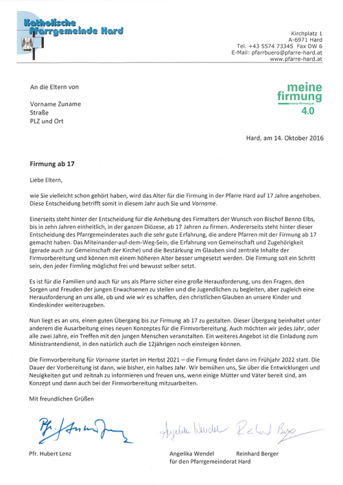 Muster 2 - Elternbrief